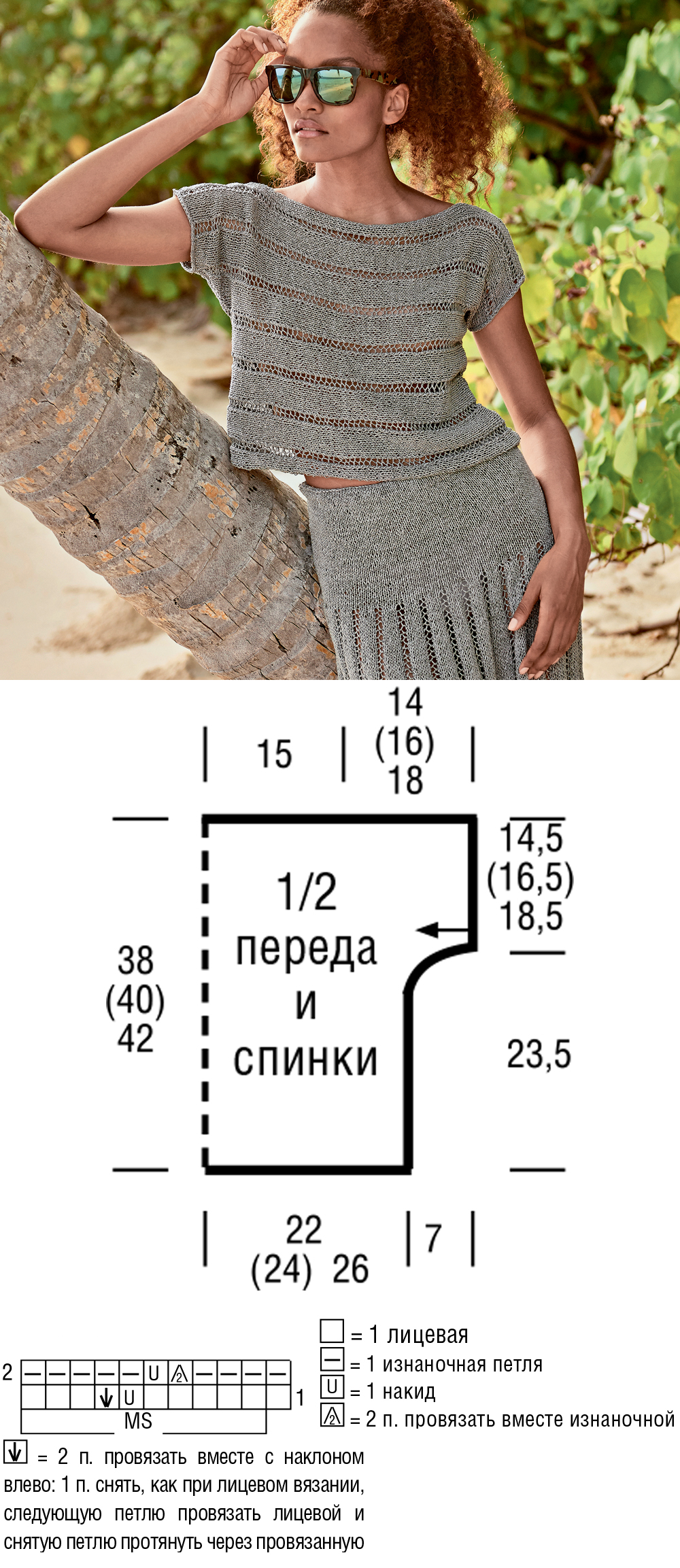 Топ с ажурным узором в полоску - схема вязания спицами. Вяжем Топы на Verena.ru