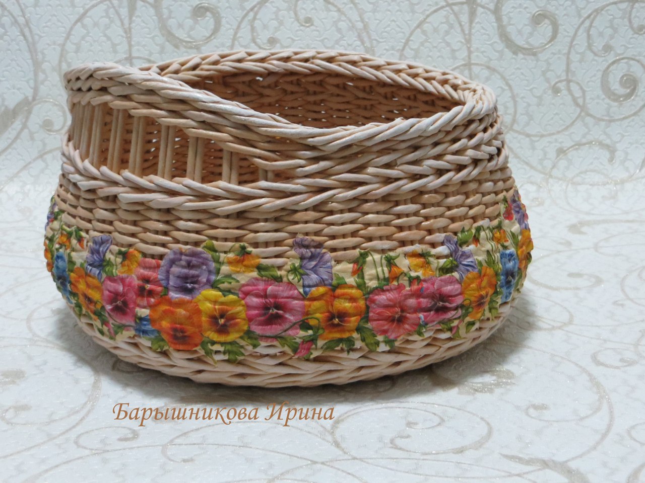 Интерьерная корзина "Анютины глазки" , диаметр 29, высота 15 (18) см