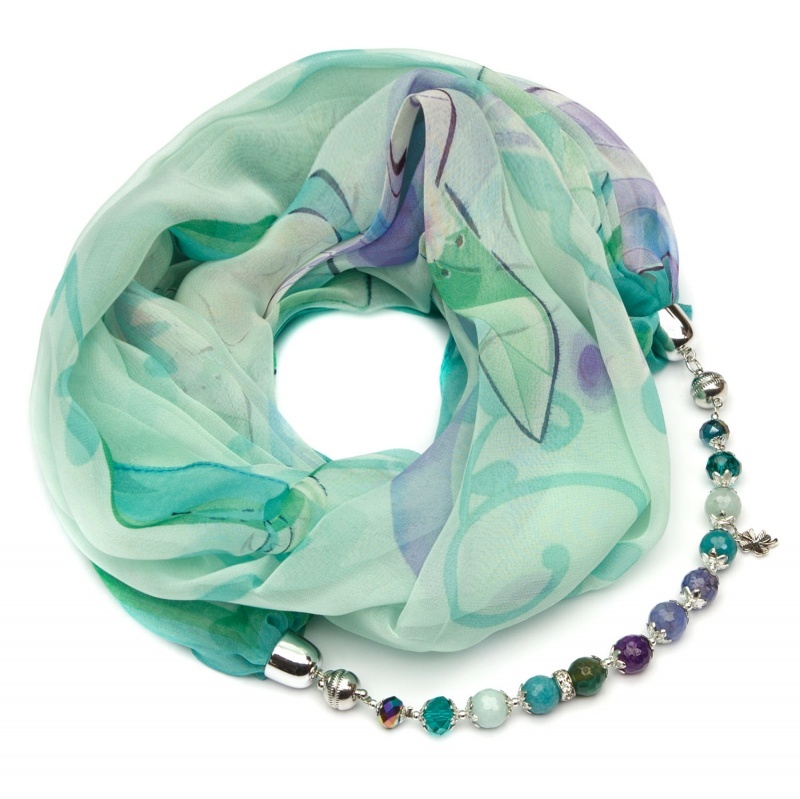 Купить мятный платок с бусами 002302_51_33a в Москве | SHARFEL