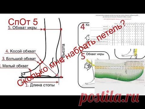 Расчёт набора петель при вязании спицами носок следков и т. п.