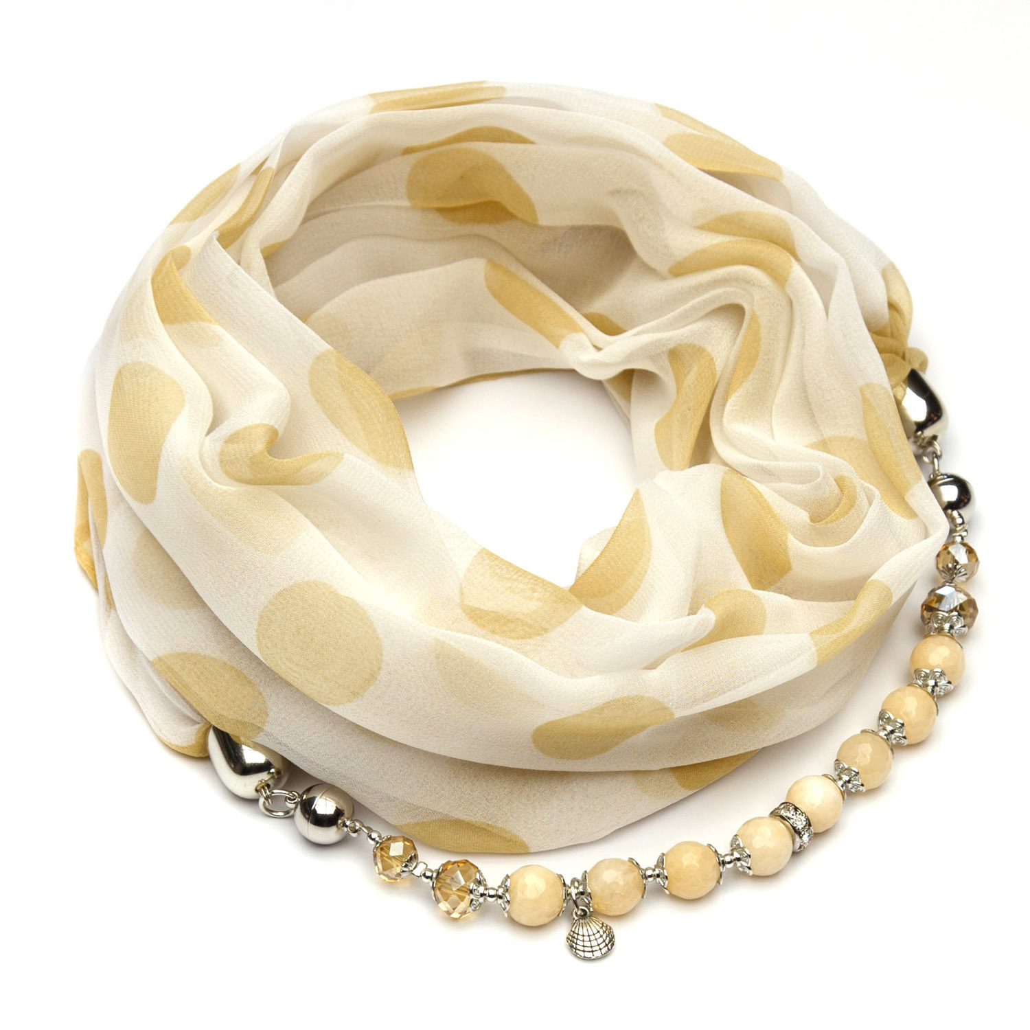 Купить белый платок в горох с бусами 002302_01_14 в Москве | SHARFEL