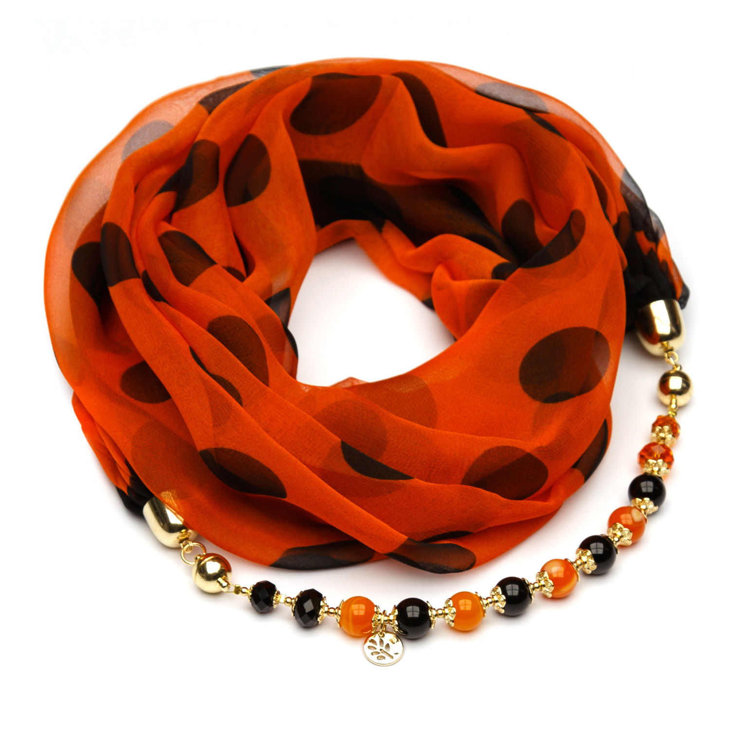 Купить оранжевый платок в горох с бусами 002302_17 в Москве | SHARFEL