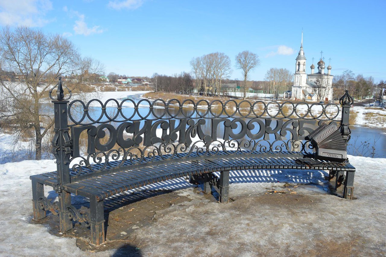 Вот такая интересная есть в Вологде лавочка "Посидим-поокаем".