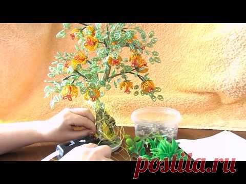 Дерево из бисера | Декорирование подставки и ствола | Мастер класс № 14