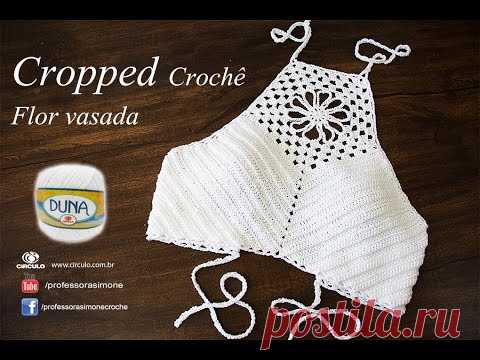 Cropped de Crochê | Flor vasada | Professora Simone Eleotério | TAM PP P M G GG