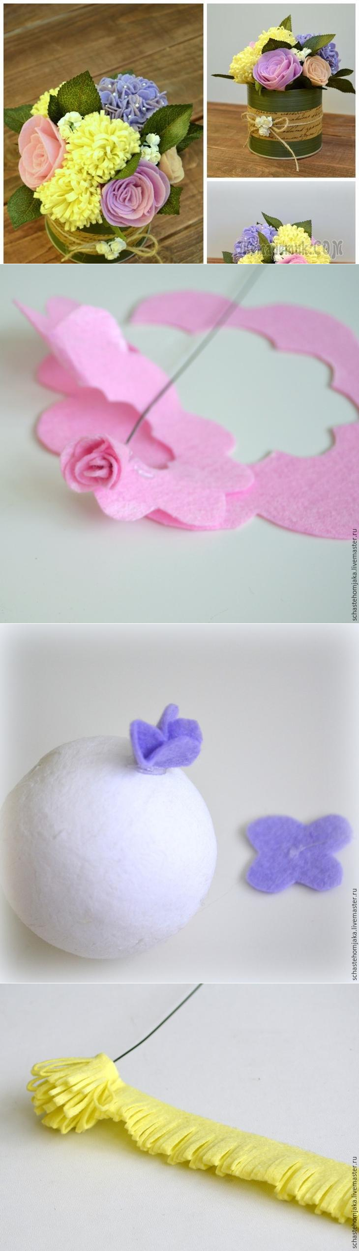 Создаем очаровательный букет цветов из фетра