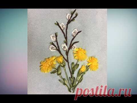 ВЕТОЧКА ВЕРБЫ и МАТЬ-и-МАЧЕХА -- ШКОЛА ВЫШИВКИ ЛЕНТАМИ Татьяны Шелиповой