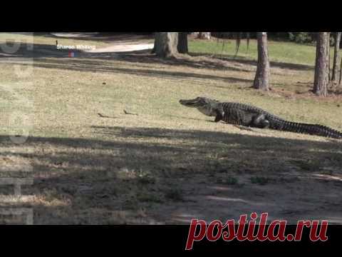 Мама-аллигатор вывела на прогулку 16 детенышей