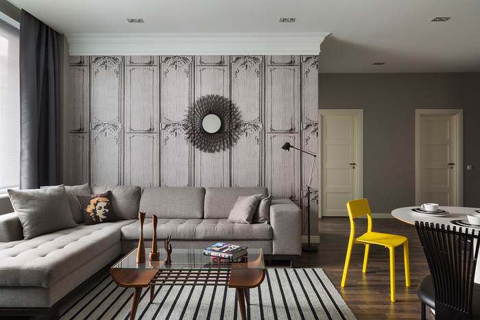 Московская квартира 95 м² с желтыми акцентами и мебелью в стиле ретро