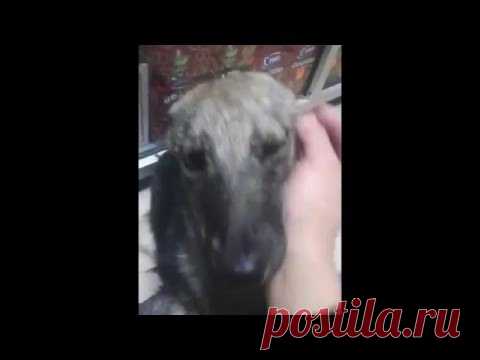 Собаку с которой плохо обращались первый раз погладили.Слёзы ручьём