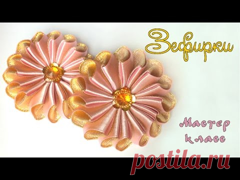 Зефирки канзаши из атласных лент своими руками Мастер класс. DIY Zephyrki kanzashi from satin ribbon - YouTube