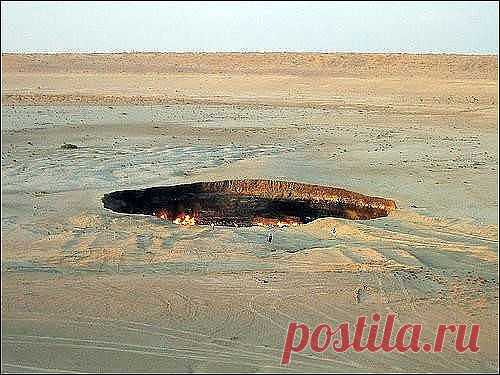 Только представьте себе: пустыня Кара кум, пески, и вдруг «дыра» в земле, из которой вырываются языки пламени, десятки метров в высоту… Местные жители нарекли это место «Вратами в Ад».