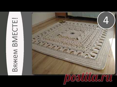 Вяжем вместе: Квадратный ковер из полиэфирного шнура, связанный крючком. Часть 4