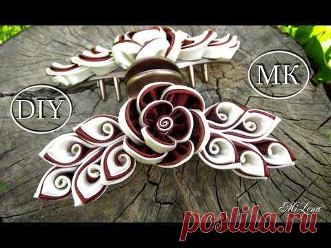 Краб Канзаши, МК / DIY Kanzashi Hair Claw / Лепесток с завитком