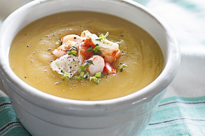 Potato, saffron & prawn soup