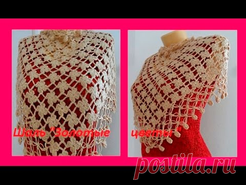 Шаль "Золотые цветы" крючок.How to Crochet A Shawl ( шаль # 49 )