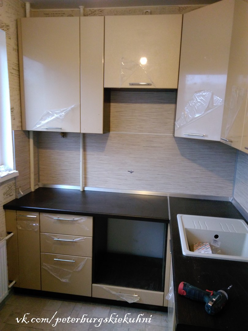 Размер кухни 1965*1620 мм (Планировка в корабле). Стоимость кухни - 60 250 руб. В стоимость кухни вошло: Корпус ЛДСП + фасады МДФ Пленка Глянец Металлик , столешница 38 мм влагостойкая+ мет. планки+ кромка в цвет, стеновая панель + планки, плинтус алюминиевый + комп. заглушек, газлифты+ демпферы, петли с доводчиком, ручки рейлинги, сушка для посуды 500 мм, ящики металлобоксы, цоколь пластиковый под венге, видимые боковины в цвет фасада, бутылочница 200 мм с доводчиком. Дос...