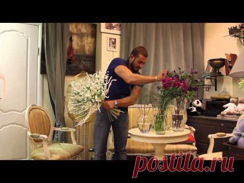 Слава Роска. Каркасный букет, камилла, кустовая гвоздика, клематис