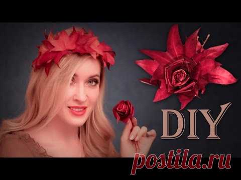 Украшения для дома/волос своими руками ✿ Венок/корона + цветок/роза из листьев