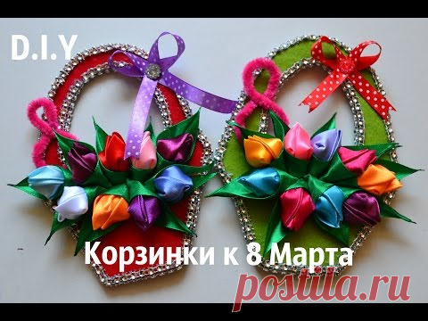 Корзинка-магнит на 8 Марта своими руками/Цветы канзаши/Basket Magnet