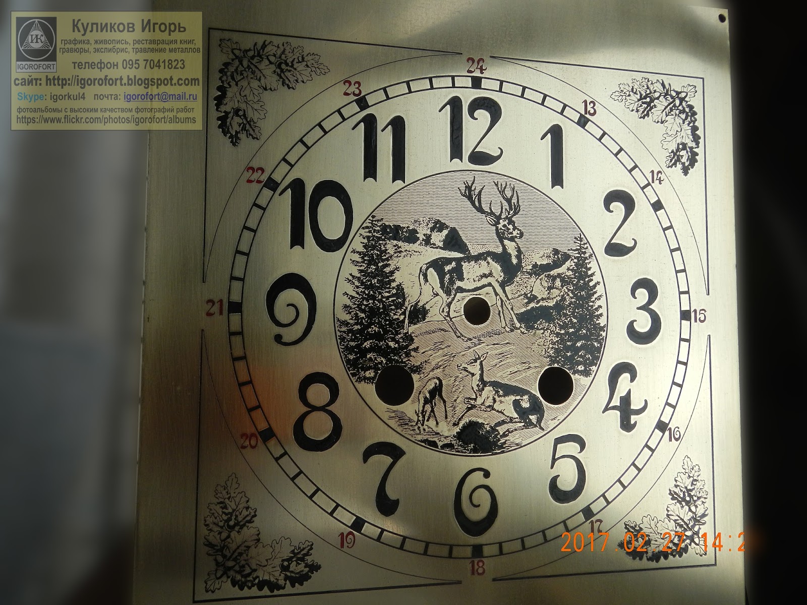 Куликов Игорь. Живопись графика офорт. Kulikov Igor painting drawing etching : Циферблат латунный. Травление. Олени. Циферблат. Циферблаты для часов. Самодельные циферблаты. Изготовление циферблатов. Изготовление циферблатов травлением. Граверные работы. Хомаж. Марьяж. Латунные циферблаты. Травление металлов. Наручные часы. Настенные часы. Напольные часы. Старинные часы. Часы Молния. Часы Победа. Часы Ракета. Золотые часы. Реставрация часов. Реставрация циферблатов. Изго...