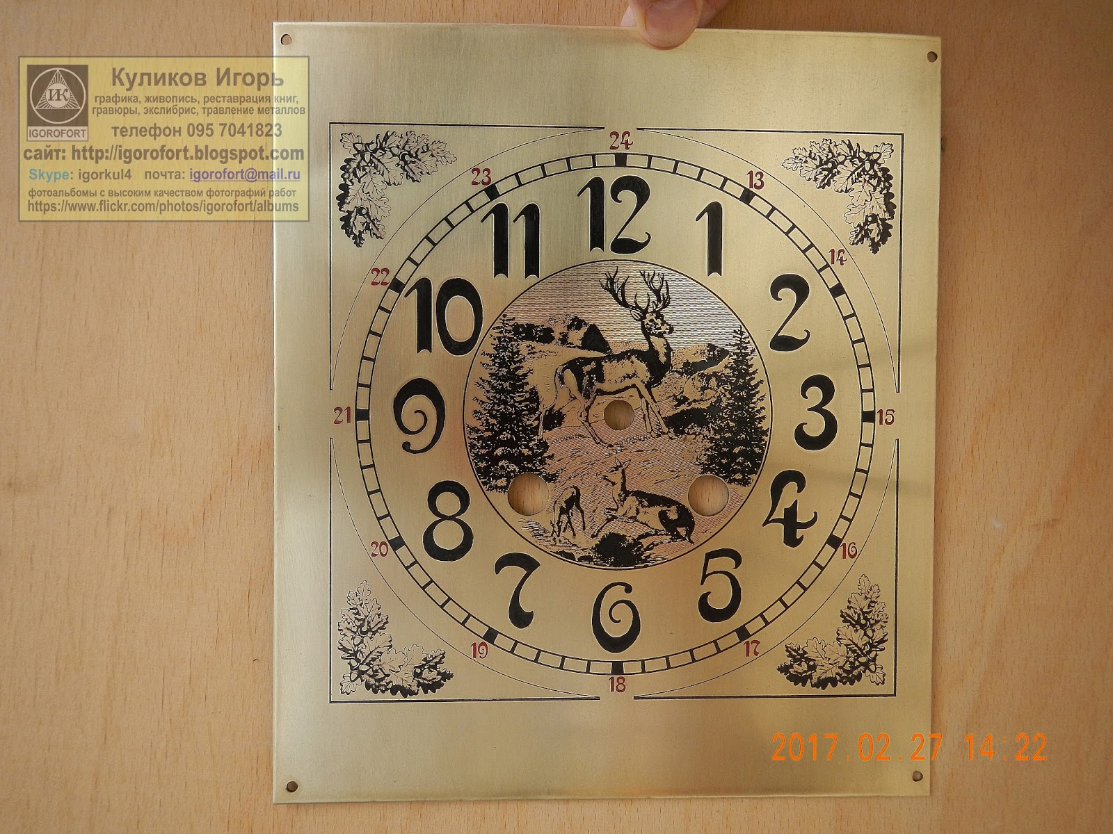 Куликов Игорь. Живопись графика офорт. Kulikov Igor painting drawing etching : Циферблат латунный. Травление. Олени. Циферблат. Циферблаты для часов. Самодельные циферблаты. Изготовление циферблатов. Изготовление циферблатов травлением. Граверные работы. Хомаж. Марьяж. Латунные циферблаты. Травление металлов. Наручные часы. Настенные часы. Напольные часы. Старинные часы. Часы Молния. Часы Победа. Часы Ракета. Золотые часы. Реставрация часов. Реставрация циферблатов. Изго...