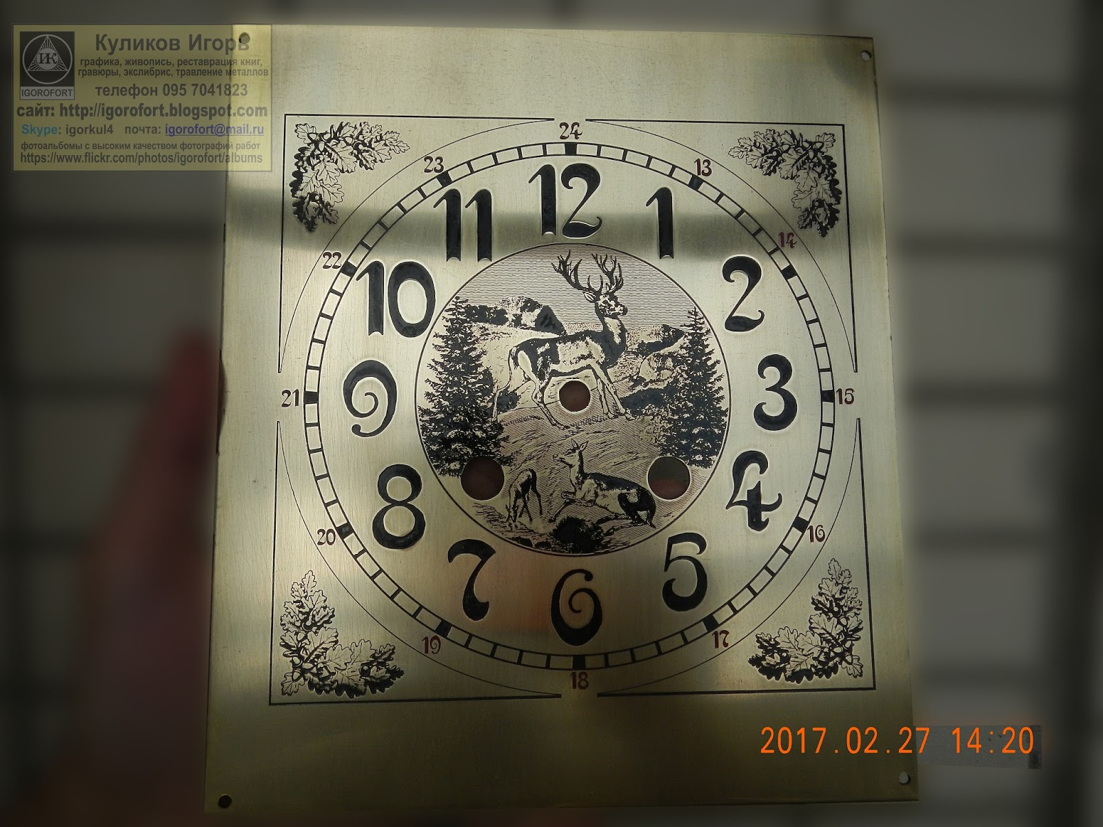 Куликов Игорь. Живопись графика офорт. Kulikov Igor painting drawing etching : Циферблат латунный. Травление. Олени. Циферблат. Циферблаты для часов. Самодельные циферблаты. Изготовление циферблатов. Изготовление циферблатов травлением. Граверные работы. Хомаж. Марьяж. Латунные циферблаты. Травление металлов. Наручные часы. Настенные часы. Напольные часы. Старинные часы. Часы Молния. Часы Победа. Часы Ракета. Золотые часы. Реставрация часов. Реставрация циферблатов. Изго...