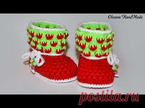 Пинетки крючком "Клубнички". Мастер класс и схема. Booties crochet DIY