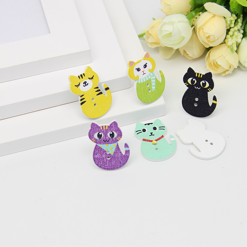Новое Прибытие 22*30 мм 50 шт. Смешанный Цвет Случайный Кот Деревянные Пуговицы Два Отверстия Швейные Craft Скрапбукинг К Одежде аксессуары купить на AliExpress