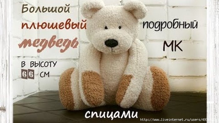 Большой плюшевый медведь спицами.