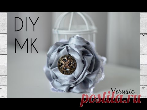 Брошь-цветок из атласной ленты/ Brooch flower of satin ribbon/ Канзаши/Kanzashi