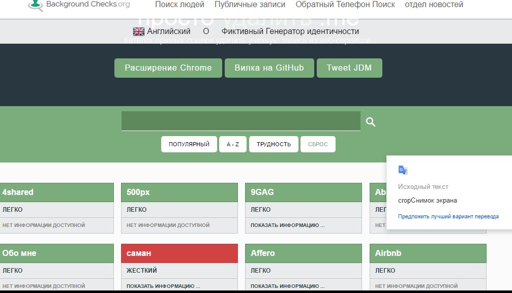 Просто Удалить меня | Каталог прямых ссылок удалить учетную запись из веб-сервисов.