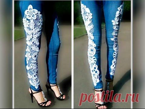 Ирландское кружево Ксения Кубышкина 14 видео.Уроки вязания.Украшаем джинсы ирландским кружевом.Irish lace on jeans