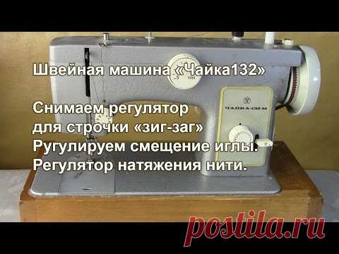 Чайка 132 М. Снимаем регулятор зигзага и регулируем смещение иголки. Видео № 247.