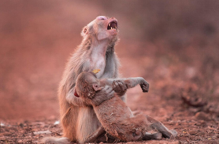 Фотограф рассказала о трагическом снимке с кричащей обезьяной и детенышем / Моя Планета