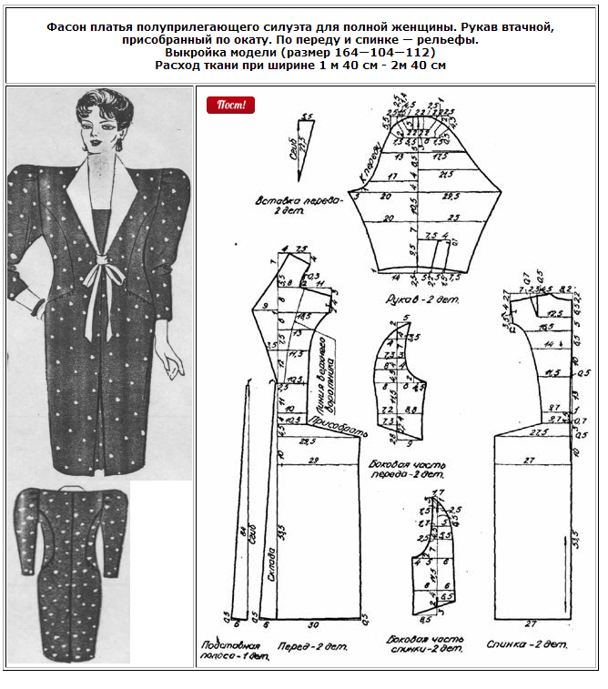 Фасоны и чертежи выкроек платьев и костюма для полных женщин