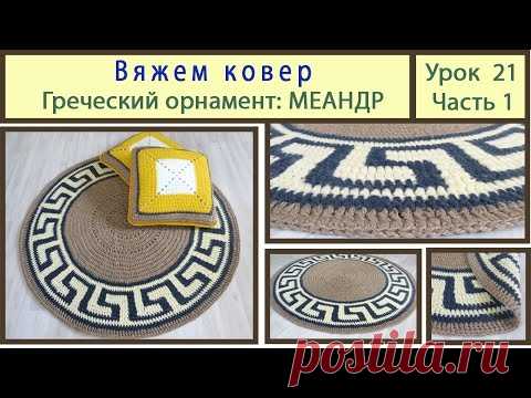 Вяжем круглый коврик с греческим орнаментом. Сrochet carpet. Урок 20 Часть 1
