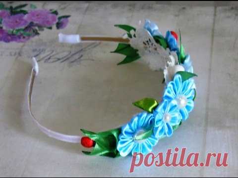 Простой ободок с цветами "Весенний" из ленты 2,5 см