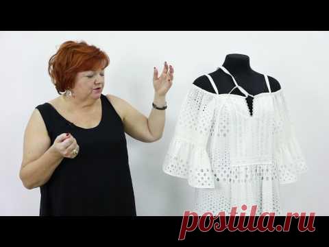 Модель белого летнего платья сарафана с открытыми плечами со сборками и воланами из ткани шитье - YouTube