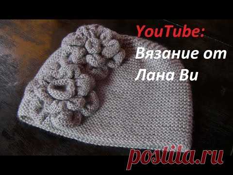 Вязаная шапка спицами: 2 видео. Винтажная шапочка спицами с цветами. Вязаные шапки спицами