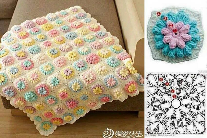Детское одеяло или плед из цветочных мотивов. Крючком. Схема. / Обсуждение на LiveInternet - Российский Сервис Онлайн-Дневников