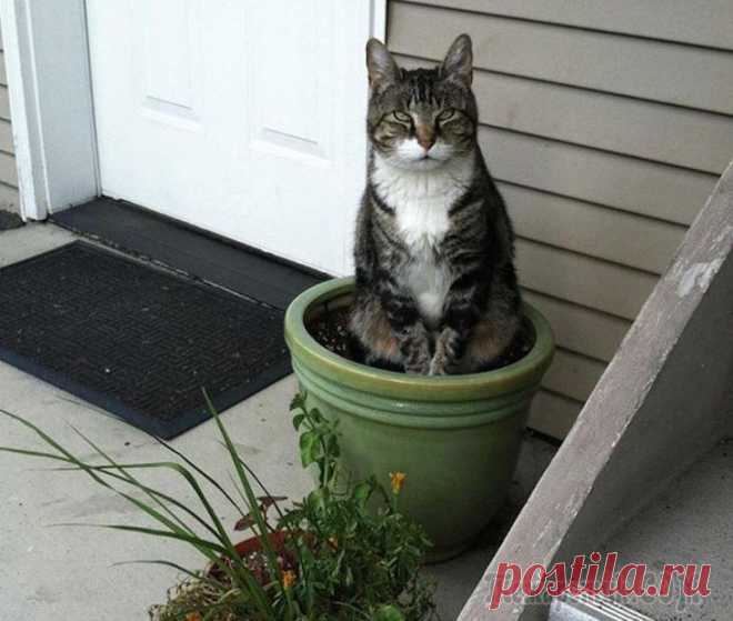 Кошки в цветочных горшочках Каждый владелец кошки, у которого когда-либо росли цветы, прекрасно знает, что цветочный горшок – идеальное место, в котором и нужно искать своего питомца. Причём, форма и размеры этого горшка могут б...