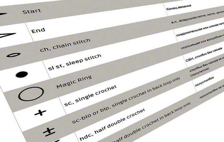 Таблица условных обозначений в вязании крючком | Вязание крючком от Елены Кожухарь Виды петель и условные обозначения. В этой таблице я собрала и буду добавлять, те значки (символы) которые используются в схемах вязания к моим мастер-классам ♦ Подробные авторские фото мастер-классы, схемы вязания, видеоуроки и описания.
