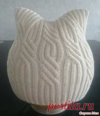 ШАПКА-БИНИ с ушками от Виктории Литвинович МАТЕРИАЛЫ: пряжа бобинная стоковая итальянская Biagioli Modesto. Цвет белый. Состав:20% кашемир, 30% шёлк, 50% меринос. Вязала в 10 сложений нити, спицами чулочными N 1,25 - резинку и в 15 сложений чулочными спицами N 2 - саму шапку. РАЗМЕРЫ: в высоту получилось 20 см. Раппорт узора в высоту 21 ряд. Резинка тоже 20 рядов. И на убавки 20 рядов. ОПИСАНИЕ: Вязала из головы. Прямоугольник простой. На резинку 2х2 набрала 192 петл...