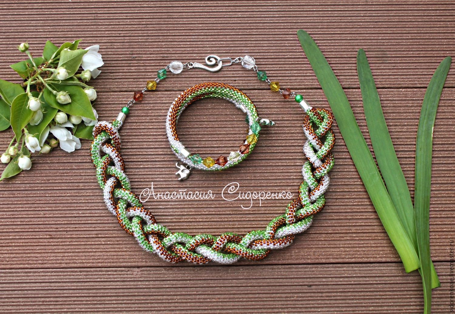 Лариат вязаный из чешского бисера Лес в снегу Купить или заказать Лариат вязаный из чешского бисера Лес в снегу в интернет-магазине на Ярмарке Мастеров. Лариат связан из чешского бисера. Использованы три оттенка чешского бисера, длина вязаной части 120 см. Длина кистей по 9 см. Прекрасно подойдет и к праздничному наряду и к офисному стилю Фурнитура под серебро. Браслет универсального размера на мемори проволоке, спиралька. Цена указана за комплект. Идеально подойдет к…