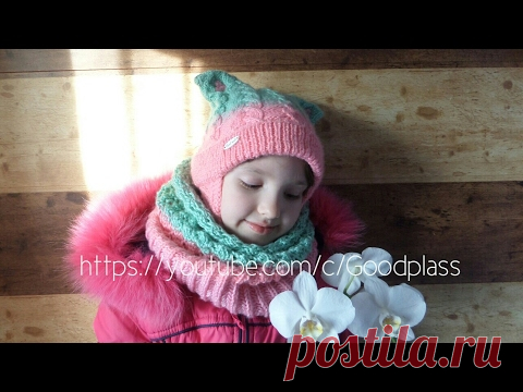 Ажурный шарф снуд детский. Вязание спицами. Вязаный Узором сетка и Английской резинкой.