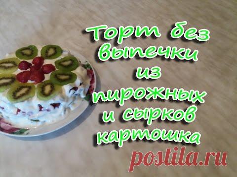 Торт картошка без выпечки слоенный из сырков,киви,клубники и пирожных картошка.
