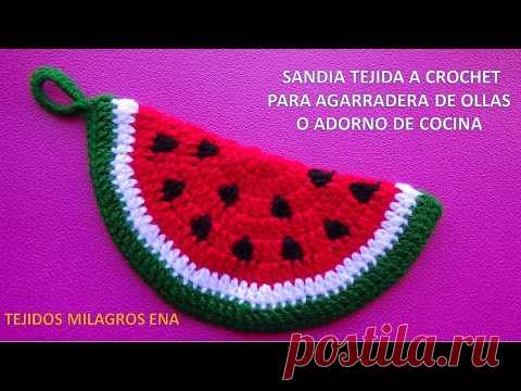Sandia tejida a crochet paso a paso para agarradera de ollas o adorno de cocina