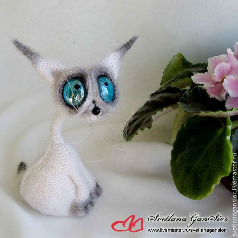Купить Лунный Сиам - белый, серый, голубой, кот, сиамский кот, вязаный котенок