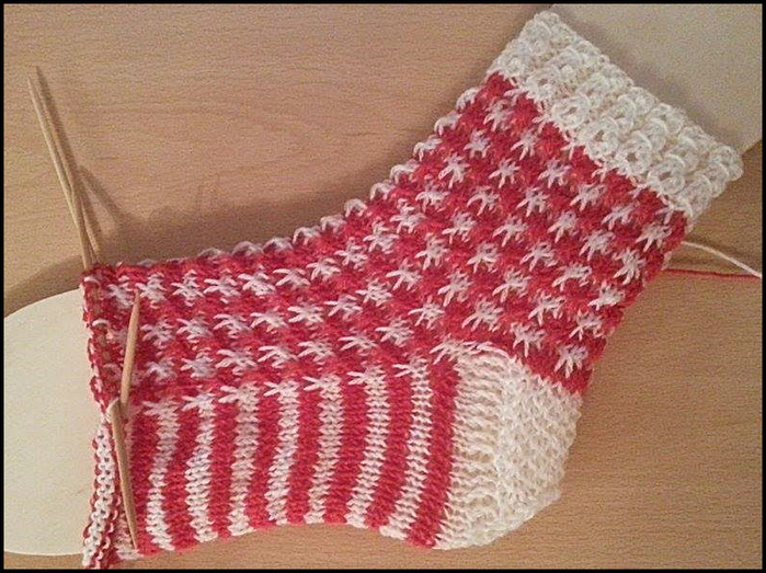 Носки "Снежинка" связаны в технике "ленивый жаккард":